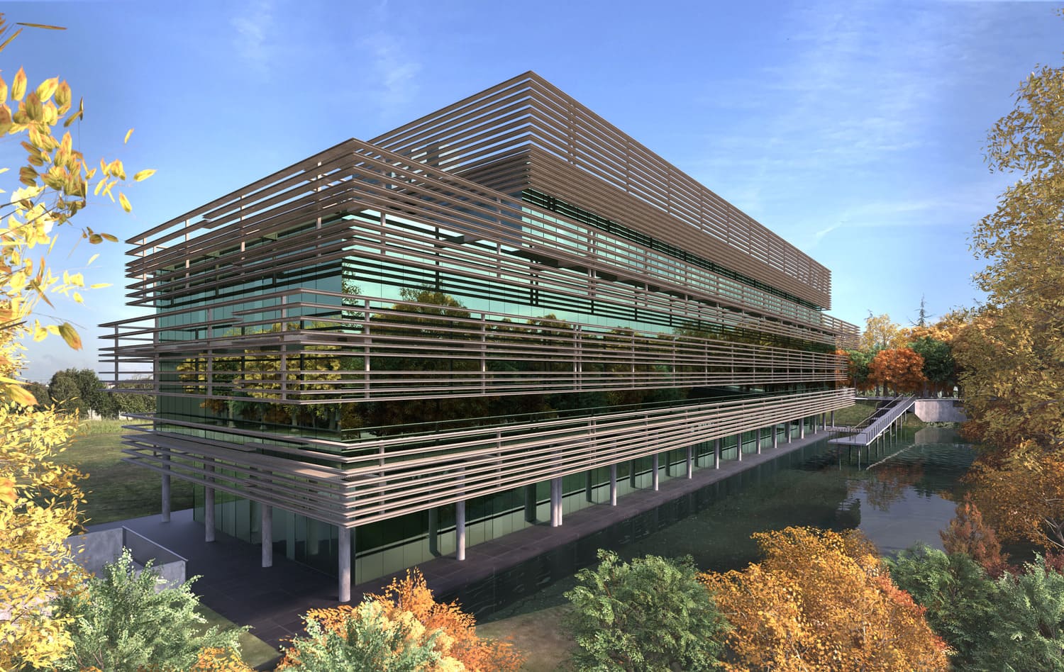La presencia de una laguna delante de la fachada principal recogerá el flujo de agua del subsuelo y proporcionará un entorno agradable a los usuarios, ya que aportará un buen equilibrio térmico y evitará la ejecución de grandes rellenos en la obra de urbanización.