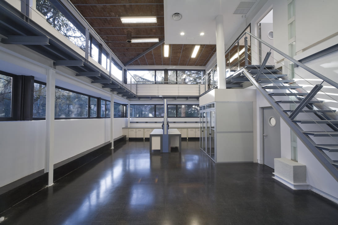 La planta superior se destina a oficinas y salas de becarios, pudiendo reconvertirse en el futuro en nuevos laboratorios sin dificultad técnica.